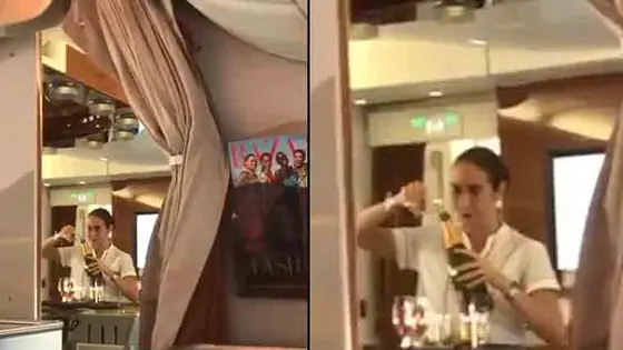 Emirates air hostess caught on cam pouring champagne back in bottle