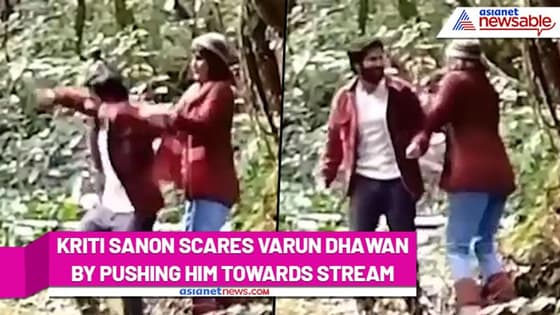 A video where Kriti Sanon is seen pushing her co-actor Varun Dhawan has gone viral. They are shooting in Arunachal Pradesh now. As they shoot for their new horror-comedy, Bhediya, the co-stars are seen enjoying. In the video, Varun is seen standing by a streamside wearing a red jacket. Kriti was standing beside him wearing a red jacket and a hat. In the video, Kriti scared Varun by pushing him, but she held him back to avoid any accident. Varun clearly panicked but then laughed it out.