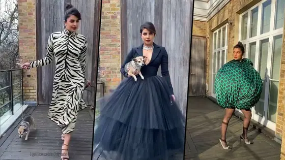 Priyanka Chopra is seen taking opinion from Instagram fashion mogul, Iggy via video chat in the video. Priyanka walks in style with pet Diana, and Tika says, 'Love It', 'Iconic'. When Diana says, "I am Vogue's best-dressed mommy", Tika gives a sassy comeback, "Umm..you need a little practice Diana".