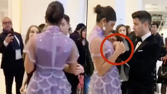 Priyanka Chopra escapes wardrobe malfunction; Nick Jonas comes to the rescue