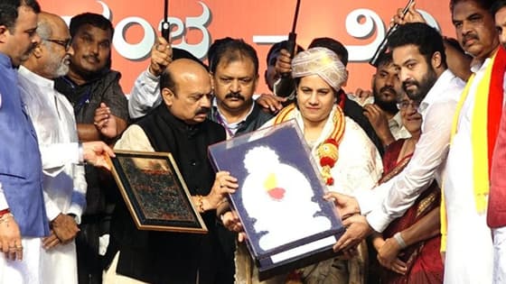 Puneeth Rajkumar posthumously awarded Karnataka Ratna by Rajini, Jr NTR; Ashwini Rajkumar accepted the honour