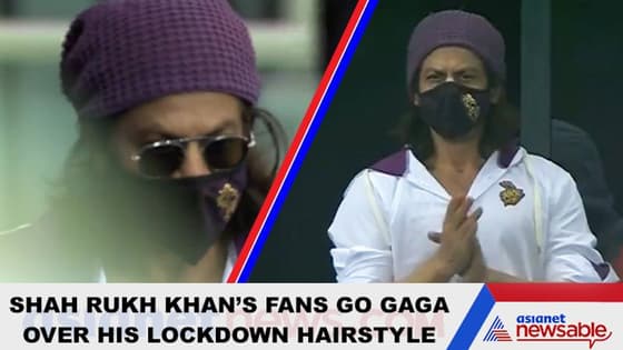 Bollywood actor Shah Rukh was spotted on Wednesday during the IPL match between Kolkata Knight Riders and Rajasthan Royals from the stands. His wife Gauri Khan and son Aryan Khan accompanied the King of Bollywood. But what dragged most of the attention was SRK's hairstyle. Yes, the Raees actor was seen in long hair. To complete his look, he donned a purple beanie and a KKR mask.