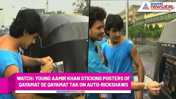 Most of us know that Qayamat Se Qayamat Tak was actor Aamir Khan's debut movie. The film released in 1988 and starred Juhi Chawla alongside him. An old video of Aamir Khan and his co-star Raj Zutshi going around Mumbai, sticking posters of the movie on auto-rickshaws has gone viral. In the video, Aamir is seen in a blue sleeveless shirt, stopping the autos on the road and asking the drivers to put the posters on the back.
