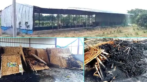 Miscreants set fire to a room containing silk at a village in Kolar district, near Bengaluru, Karnataka. The farmer Ramakrishanappa has suffered losses to the tune of lakhs