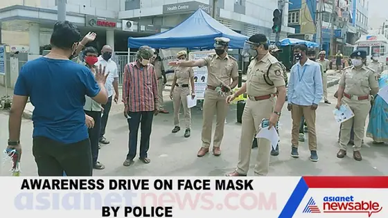 To bring awareness among public on wearing face mask, Bengaluru police conducts awareness drive.