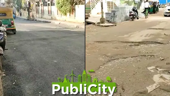 Bengaluru: Two years of hell turned around in just three days. The roads in LB Shastrinagar of Vignananagar ward was one of the worst and had many potholes. Every time it rained movement had become a difficult task. From children to the aged, all had to risk their lives walking and driving on this stretch on LB Shastrinagar Nagar Main Road. Now the roads have been fixed.