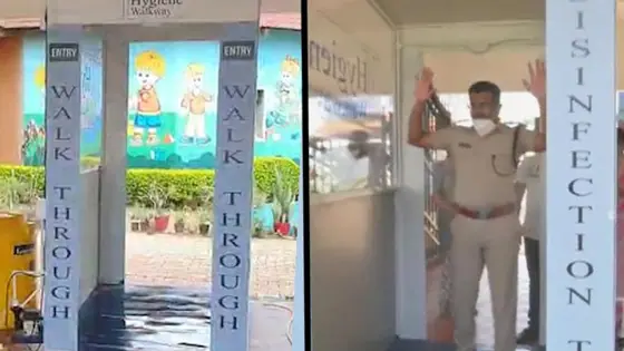 Bengaluru: A school in Karnataka, Vishwa Vidyapeeth, has installed an organic disinfection tunnel. The disinfection tunnel was inaugurated by DCP Dr Bheemashankar S Guled.