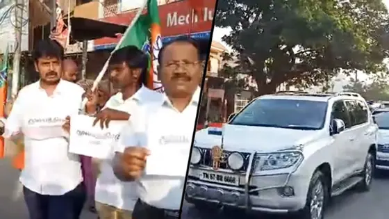 While the convoy was passing through the reserve line in the city, BJP workers carrying placards with the slogan ‘where is the original document of Murasoli land’, attempted to block Stalin’s car. However, the security guards shooed away the BJP workers immediately and cleared the route.