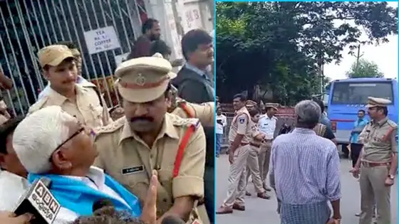 Telangana Road Transport Corporation strike turned tense after police detained Telangana Jana Samiti president-professor M Kodandaram