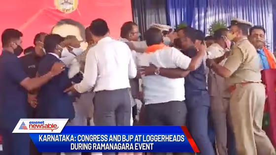 In a huge embarrassment to state politics, Karnataka Congress MP DK Suresh and BJP Minister CN Ashwath Narayan created a riot and nearly came to blows in front of Chief Minister Basavaraj Bommai over development works at a government event in Ramanagara district on Monday.