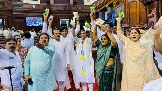 On Wednesday, Opposition members stalled the proceedings of the Rajya Sabha and protested inside the well of the House. They were seen holding milk packets and raising slogans against the government.