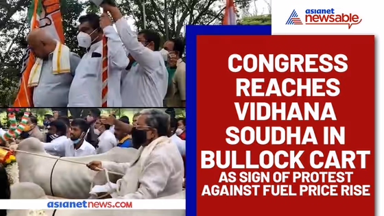 Congress reaches Vidhana Soudha in bullock cart as sign of protest against fuel price rise