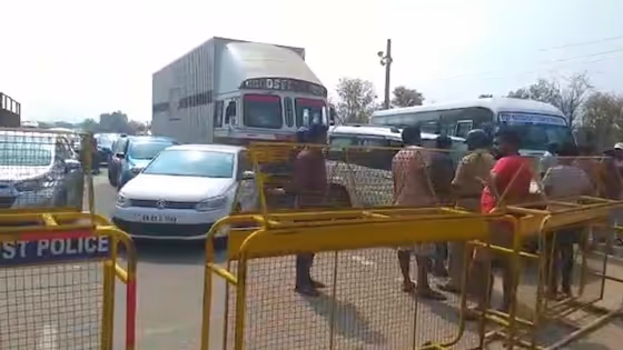 Karnataka Police sealed off Hosakote and banned vehicles from crossing borders. Tamil Nadu buses and Karnataka buses were stopped from entering either states.