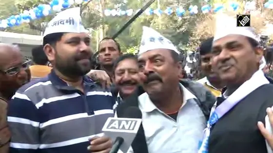 New Delhi: Aam Aadmi Party (AAP) supporters celebrated outside party office in Delhi on February 11. They celebrated by singing the famous single of BJP for Delhi elections. The trends show Arvind Kejriwal as the CM for the third term. Some AAP supporters mocked Delhi BJP chief, Manoj Tiwari, and sang their own version of 'Rinkiya ke papa'.