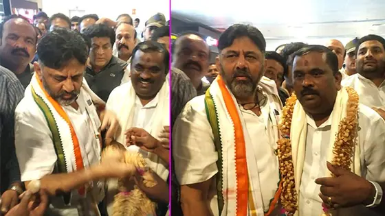 DK Shivakumar was given a grand welcome outside the Kempegowda International Airport by fans and supporters of the Congress.