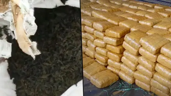 Visakhapatnam: Directorate of Revenue Intelligence seized 1638 kg of cannabis worth Rs 2.45 crore. The marijuana was procured at Visakhapatnam, Andhra Pradesh, and was being taken to Bhubaneswar. It was carried out in bags concealed under banana stalks. Four persons, who were involved, have been nabbed and further investigation is on.