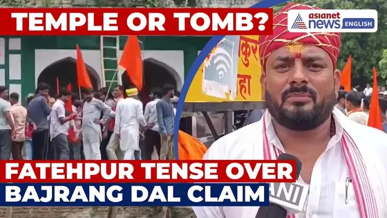 Tension Escalates In UP's Fatehpur As Bajrang Dal Claims Old Tomb Is TempleIn Fatehpur’s Abu Nagar, Bajrang Dal and other Hindu organisation members stormed an old tomb, asserting it’s a temple. They demanded to offer prayers, sparking tension. Visuals show protesters vandalising with sticks. Heavy police deployed to prevent further escalation as situation remains tense.