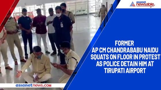Former AP CM Chandrababu Naidu squats on floor in protest as police detain him at Tirupati airport