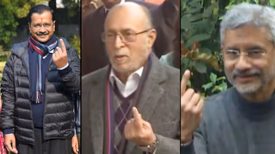 Top politicians from the BJP and AAP cast their vote in Delhi, where polling began at 8 am on February 8. From Jaishankar, Kapil Mishra to Arvind Kejriwal, netas stepped out to exercise their franchise.