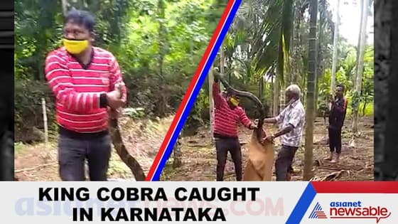 Shivamogga (Karnataka): A 15-foot-long King Cobra had sent the entire village of Hosanagara in Shivamogga district in Karnataka into a panic mode after it was spotted in a farmland. Umesh, the owner of the land and a former gram panchayat president of Hosanagara, called up snake rescuers. After two hours of struggle, the snake was caught and later released into a forest. King Cobras are often found in Shivamogga's Agumbe. Karnataka chief minister BS Yediyurappa hails from Shivamogga district.