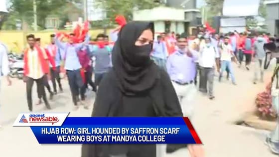 A video, accessed by Asianet Newsable, showed the extent of polarization in the region. The visuals showed a Muslim girl being shouted at by a large group of saffron-cloth waving students. They were objecting to her arriving at the college wearing a hijab.