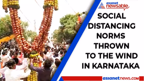 Chitradurga: With coronavirus still rampant across the country and cases surging by thousands with each passing day, a Karnataka leader's supporters were seen completely disregarding social distancing norms.