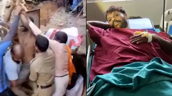 Mangaluru: A man who fell into a 15-feet-deep hole in Maravanthe village in Udupi district of Karnataka on February 16 has been rescued. The incident took place when the land around the borewell that was being dug collapsed suddenly. The man was identified as Rohith.