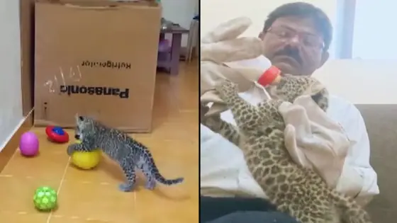 Mumbai: Two leopard cubs became the centre of attraction at Sanjay Gandhi National Park in Mumbai. One of the cubs was seen playing with balls, while the other was roaming in the park. Milk was being fed to them with bottle.