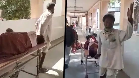 The weak health system in the country is now and then exposed, still no government takes note of it. Now, an elderly man is seen dragging his ailing wife on a stretcher at Kalaburagi government hospital raising concerns about Karnataka' health system.