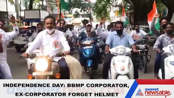 In excitement, on Independence Day former corporator CK Ramamurthy took his wife, a BBMP corporator, on a motorcycle and rode the streets of Bengaluru. But the two seem to have forgotten to wear a helmet and did not even wear a face mask properly.