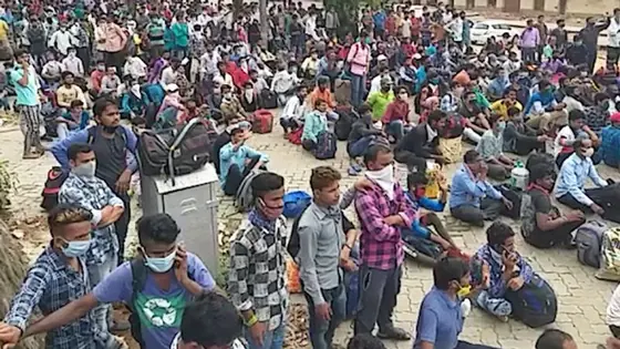 The migrant labourers have decided not to move from the station until trains are arranged to send them back to their native places. Railways and Pandeshwar Police tried to convince them to go back to their camps, but the workers are reluctant to leave the place.