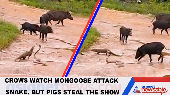 In an intense battle between a mongoose and cobra, pigs entered to steal the show.
