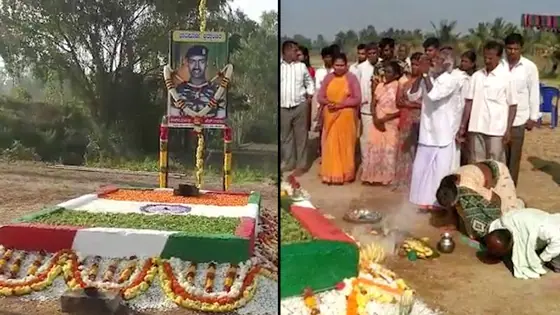 Mandya: On the anniversary of Pulwama attack in which 40 CRPF personnel made their supreme sacrifice, a braveheart from Mandya named Guru laid down his life. Family and friends paid homage to the martyr in his hometown Gudikare village in Mandya district. The family paid their respects at the tomb in KM Doddi, Maddur taluk