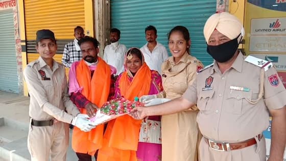 Amritsar: Weddings still continue to take place in India despite the nationwide lockdown. While some weddings take place with safety precautions, others take place as if everything is normal. But here's a couple who were praised by Punjab Police as they followed all lockdown rules and wed in the simplest way. The bride and groom entered wedlock on April 19 in the presence of just 5 people each from both families. Krishna SIngh and Manjit Kaur were given a warm and memorable welcome by the police department in the presence of SPH Ratna Singh Brar, DSP Bagha Purana Ravinder Singh and Police Officer-in-charge Kulwinder Singh Dhaliwal. The newlywed couple was greeted with applause when they reached Main Chonk Bhagat Singh road and celebrated by cutting a cake. The police then escorted the couple to their house as a mark of respect.