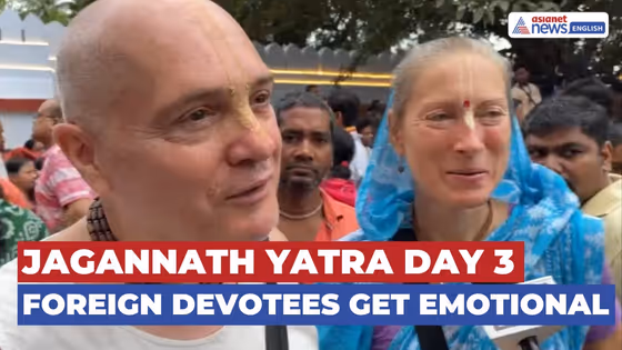 On third day of Jagannath Rath Yatra in Puri, Odisha, devotees from around the world joined in devotional journey. A foreign devotee called it an emotional moment to witness such divine energy. The chariot procession, filled with chants and drumbeats, continues till July 1 with unmatched spiritual fervour.