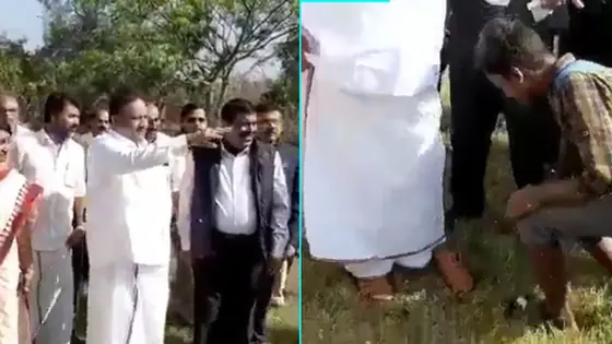 In a video which went viral, a Tamil Nadu minister Dindigul Srinivasan can be seen asking tribal children to remove his slippers in public. Netizens are slamming him on social media for his high handedness.