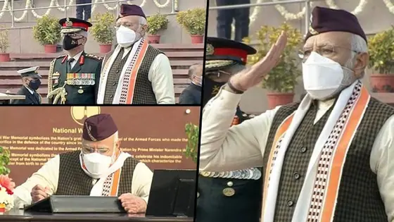 On Wednesday, the prime minister paid tribute at the National War Memorial, a memorial to warriors who have rendered great sacrifices for the country, while donning the Uttarakhandi hat and the Manipuri stole.
