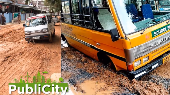 Residents use tyres to cover caved-in roads that were part of Karnataka chief minister’s rounds