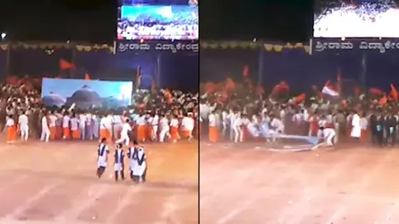 Mangaluru: While the entire nation has welcomed the Ayodhya verdict, a school run by Rashtriya Swayamsevak Sangh (RSS) has created controversy with their act during a school function. A video of students of Sri Rama Vidyakendra High School in Dakshina Kannada district of Karnataka demolishing a replica of the Babri Masjid during their school function has gone viral and courted controversy. Students performed a mock-up of the Babri Masjid demolition during a flash-flood lighting ceremony and shouted slogans such as 'Ram Mandir Wahi Banegi' and 'Jai Sriram'. The video of wrecking the Babri Masjid at the school function has now gone viral on social media sites. Allegations are rife that the school is trying to stir up communal hatred in the minds of innocent children in the name of Hindutva and plant the seeds of communism in an educational institution.