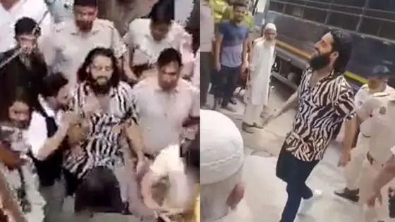 The now-viral video footage shows Pathan being greeted with slogans and cheers by a huge crowd as he walked through the lane escorted by the personnel of the very police force he allegedly took aim at. Pathan had been allowed by a court to visit his ailing father on four-day parole.