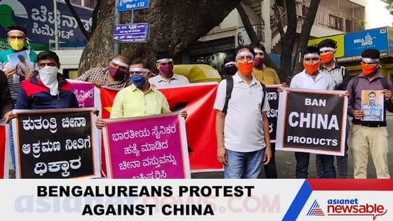 People in Bengaluru took to the streets and raised slogans against China, and also displayed posters calling for ban on Chinese products