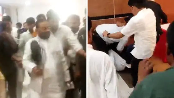 However, quick-acting party workers managed to apprehend the man responsible for the act and subsequently subjected him to physical retaliation. Videos capturing the scene depict Samajwadi Party workers engaging in a confrontation with the person, while police personnel are present on the scene.