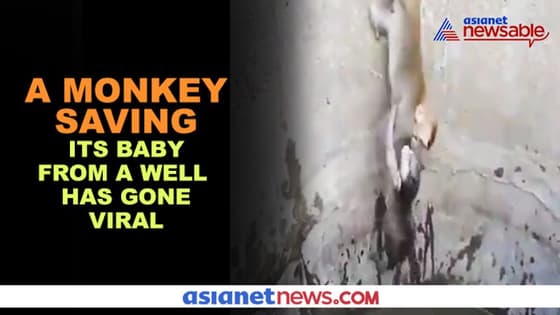 While the mother monkey came to its rescue, she lowered herself inside the well while balancing her back legs and tried to get her baby out. Eventually, she managed to get hold of her baby, after which the baby jumped onto her back.