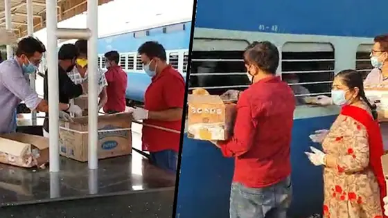Volunteers distribute food to labourers in Shramik Special trains in Bengaluru