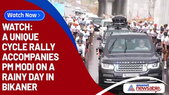 In this video, a unique cycle rally can be seen accompanying PM Modi on a rain-soaked day in Bikaner.