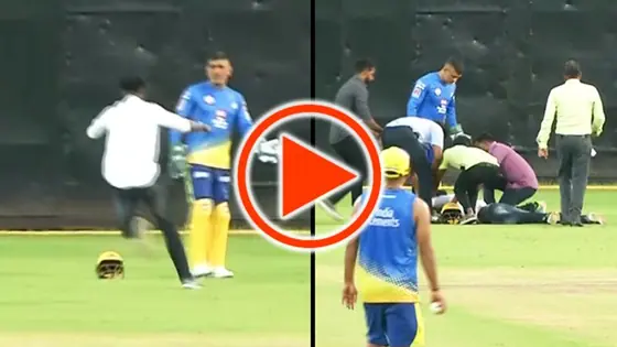 A fan broke all barriers and reached legendary cricketer MS Dhoni during a practice session of Chennai Super Kings in Chennai, and touched his feet