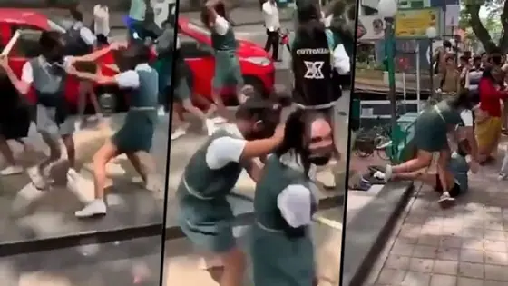 The video shows two groups of students in the school uniform violently assaulting and abusing each other on the school premises. Several students, reportedly from Bishop Cotton Girls' School, were attacked.