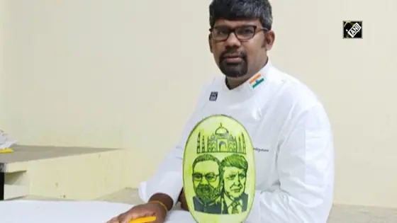 Ahead of US President Donald Trump’s visit to India, an artist based out of Tamil Nadu carved out a special portrait of US President Donald Trump and Prime Minister Modi on a watermelon.