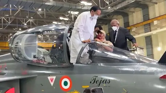 Naidu also got into the cockpit of the Tejas fighter aircraft.
