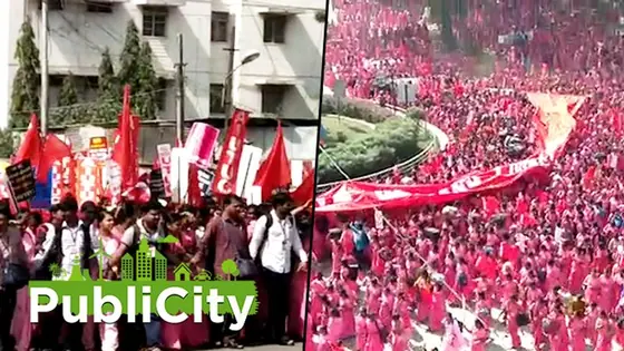 Bengaluru: Thousands of ASHA workers arrived at Majestic Railway Station and marched to Freedom Park in Bengaluru to register their protest over the government not giving them their monthly honorarium of Rs 6,000 for the last 15 months.